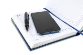 Zdjęcie "Duży notebook z pióra i telefon. Izolowanie" może być wykorzystywane do celów osobistych i komercyjnych zgodnie z warunkami zakupionej licencji Royalty-free. Obraz jest dostępny do pobrania w jakości wysokiej rozdzielczości do 5760x3840.