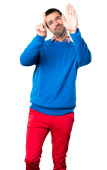 Przystojny młody mężczyzna dumny z siebie na białym tle