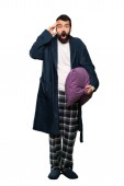 Przystojny, młody człowiek z rękawice bokserskie na białym tle