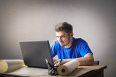 Zdjęcie "Młody biznesmen, siedząc na kanapie z jego laptop i pracy." może być wykorzystywane do celów osobistych i komercyjnych zgodnie z warunkami zakupionej licencji Royalty-free. Obraz jest dostępny do pobrania w jakości wysokiej rozdzielczości do 5760x3840.