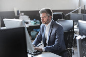 Zdjęcie "Młody biznesmen, siedząc przy biurku przed komputerem i patrząc przez okno." może być wykorzystywane do celów osobistych i komercyjnych zgodnie z warunkami zakupionej licencji Royalty-free. Obraz jest dostępny do pobrania w jakości wysokiej rozdzielczości do 5760x3840.
