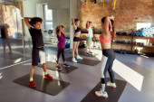 Zdjęcie "Grupa ćwiczeń w siłowni razem kobiety." może być wykorzystywane do celów osobistych i komercyjnych zgodnie z warunkami zakupionej licencji Royalty-free. Obraz jest dostępny do pobrania w jakości wysokiej rozdzielczości do 5760x3840.
