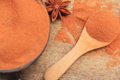 Zdjęcie "Widok z góry z drewniane łyżki pełne paprica i czarny pieprz na podłoże drewniane beczki, Selektywny fokus." może być wykorzystywane do celów osobistych i komercyjnych zgodnie z warunkami zakupionej licencji Royalty-free. Obraz jest dostępny do pobrania w jakości wysokiej rozdzielczości do 5760x3840.