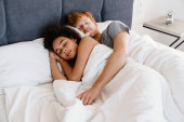 Portret szczęśliwy, Młoda para, leżąc razem w łóżku