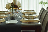 Luksusowy stół jadalny ze stołem w jadalni klasyczny, drewniany stół z styl klasyczny fotel, koncepcja projektowania wnętrz