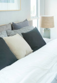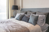 Zdjęcie "Przytulny pokój w klasycznym stylu z zestawem poduszek i lampka na stolik, koncepcja projektowania wnętrz" może być wykorzystywane do celów osobistych i komercyjnych zgodnie z warunkami zakupionej licencji Royalty-free. Obraz jest dostępny do pobrania w jakości wysokiej rozdzielczości do 5760x3840.