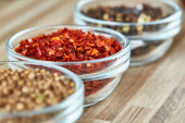 Zdjęcie "Red hot chili pieprz płatki w drewnianą łyżką na białe tło teksturowane, widok z góry, zbliżenie, selektywnej ostrości." może być wykorzystywane do celów osobistych i komercyjnych zgodnie z warunkami zakupionej licencji Royalty-free. Obraz jest dostępny do pobrania w jakości wysokiej rozdzielczości do 5760x3840.