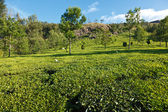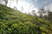 Zielona herbata ogrody w świetle słońca rano. Kandy, Sri Lanka