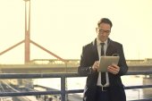 Zdjęcie "Młody biznesmen, siedząc na most i dotykając jego laptop." może być wykorzystywane do celów osobistych i komercyjnych zgodnie z warunkami zakupionej licencji Royalty-free. Obraz jest dostępny do pobrania w jakości wysokiej rozdzielczości do 5760x3840.