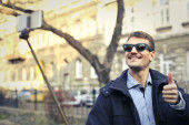Zdjęcie "Młody biznesmen z kawy, aby przejść uśmiecha się do kamery." może być wykorzystywane do celów osobistych i komercyjnych zgodnie z warunkami zakupionej licencji Royalty-free. Obraz jest dostępny do pobrania w jakości wysokiej rozdzielczości do 5760x3840.