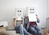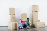 Zdjęcie "Szczęśliwa para młodych, co niektóre zabawy razem w ich nowym domu." może być wykorzystywane do celów osobistych i komercyjnych zgodnie z warunkami zakupionej licencji Royalty-free. Obraz jest dostępny do pobrania w jakości wysokiej rozdzielczości do 5760x3840.