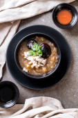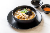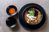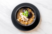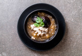 Duszone ryby Maw w czerwonym sosie zupa z kraba w misce