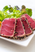 świeży tuńczyk raw z sosem pikantnym Sałatka - zdrowa żywność