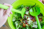 Zdjęcie "Kobieta ręce dodając sos do sałaty z liśćmi sałaty. Domowej kuchni. Smaczne, zdrowe i zdrowej żywności" może być wykorzystywane do celów osobistych i komercyjnych zgodnie z warunkami zakupionej licencji Royalty-free. Obraz jest dostępny do pobrania w jakości wysokiej rozdzielczości do 5760x3840.