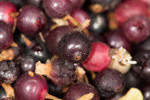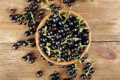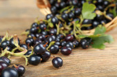 dojrzałych upraw porzeczek jest rozrzucone na tle drewnianych. berry witaminy. miejsce dla tex