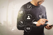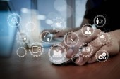 Zdjęcie "E-learning z połączonych przekładni zębatych połączony widok diagramu wirtualnego dashboard.top Projektant ręki pracę z komputera typu tablet cyfrowych i inteligentny telefon na biurko z drewna jako koncepcja projektowania reagujących serwisów www" może być wykorzystywane do celów osobistych i komercyjnych zgodnie z warunkami zakupionej licencji Royalty-free. Obraz jest dostępny do pobrania w jakości wysokiej rozdzielczości do 5760x3840.