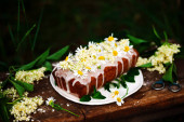wegańskie czarnego bzu miód cytryny skropić cake.rustic style.selective ostrości