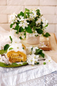 wegańskie czarnego bzu miód cytryny skropić cake.rustic style.selective ostrości