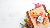 Zdjęcie "Preparat do przygotowania Wklej. Dania kuchni włoskiej. Na tle drewnianych. Widok z góry. Miejsce." może być wykorzystywane do celów osobistych i komercyjnych zgodnie z warunkami zakupionej licencji Royalty-free. Obraz jest dostępny do pobrania w jakości wysokiej rozdzielczości do 5760x3840.