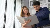 Zdjęcie "Dwaj koledzy office, omawiając pracę i uśmiechając się siedząc w kawiarni" może być wykorzystywane do celów osobistych i komercyjnych zgodnie z warunkami zakupionej licencji Royalty-free. Obraz jest dostępny do pobrania w jakości wysokiej rozdzielczości do 5760x3840.