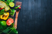 Zdjęcie "Sałatka szpinaku i przepiórczych jaj na tle drewnianych. Zdrowe jedzenie. Widok z góry. Miejsce." może być wykorzystywane do celów osobistych i komercyjnych zgodnie z warunkami zakupionej licencji Royalty-free. Obraz jest dostępny do pobrania w jakości wysokiej rozdzielczości do 5760x3840.