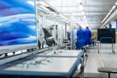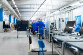 Mińsk, Białoruś - 08 maja 2018: warsztaty dla telewizorów montażowych