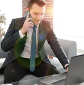Portret biznesmena rozmawiającego przez telefon komórkowy w biurze