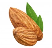 Dwóch migdałów zbliżenie na białym tle bez powłoki z liści jako element projektu pakiet na białym tle. Koncepcja makro grupy Nut