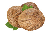 Zdjęcie "Trzy orzech na białym tle zbliżenie na białym tle ze ścieżką przycinającą. Nakrętka makro. Orzechy włoskie z liści jako pakiet projektowania elementu kolekcji" może być wykorzystywane do celów osobistych i komercyjnych zgodnie z warunkami zakupionej licencji Royalty-free. Obraz jest dostępny do pobrania w jakości wysokiej rozdzielczości do 5760x3840.