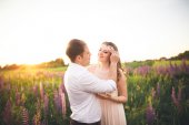 Młoda para brzęk szkła z czerwonego wina na spokojnej piknik