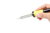 Zdjęcie "Lutownica w dłoni odizolowana na białym tle." może być wykorzystywane do celów osobistych i komercyjnych zgodnie z warunkami zakupionej licencji Royalty-free. Obraz jest dostępny do pobrania w jakości wysokiej rozdzielczości do 5760x3840.
