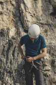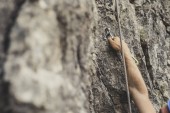 Człowiek, wspinaczka zewnątrz naturalnych skał.