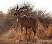 Kudu Bull stojące w południowej afrykańskiej sawanny