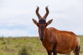 portret dorosłych czerwonego Hartebeest w południowej afrykańskiej sawanny