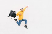 Zdjęcie "Portret szczęśliwy Ładna dziewczyna, która skacze w lekkich ubrań na tle szarej ścianie. Młody atrakcyjny skakac na szarym tle." może być wykorzystywane do celów osobistych i komercyjnych zgodnie z warunkami zakupionej licencji Royalty-free. Obraz jest dostępny do pobrania w jakości wysokiej rozdzielczości do 5760x3840.