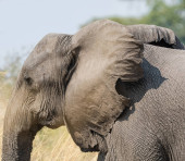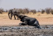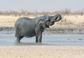 Samotny słoń afrykański, idąc przez sawanny Namibii