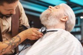 Radosny dojrzały mężczyzna osoba odwiedzająca fryzjera