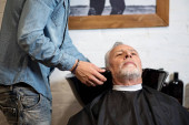 Zadowolony dojrzały mężczyzna komunikuje się z master