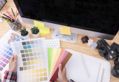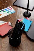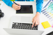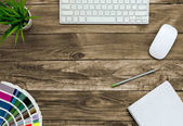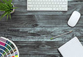 płaski układ z klawiaturą, komputer mysz i kolory palety w pracy projektanta