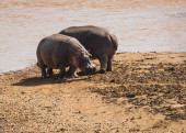 Dla dzieci Hippo ze swoją matką w Caprivi Strip, Namibia