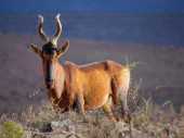 dla dorosłych czerwonego Hartebeest w południowej afrykańskiej sawanny