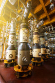 Zdjęcie "Kolektora linii produkcji ropy i gazu, które kontrolowane przez program lub technika ropy naftowej. Funkcję zaworu, aby zamknąć i otworzyć przez programowalne przez sterowni dla kontroli produkcji ropy naftowej i gazu." może być wykorzystywane do celów osobistych i komercyjnych zgodnie z warunkami zakupionej licencji Royalty-free. Obraz jest dostępny do pobrania w jakości wysokiej rozdzielczości do 5760x3840.
