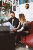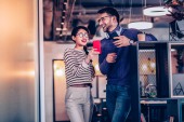 Zdjęcie "Uśmiechający się panienki w okularach, siedzi przy stole i robienia zdjęć na telefon mlecznego że kelner, dając jej w kawiarni" może być wykorzystywane do celów osobistych i komercyjnych zgodnie z warunkami zakupionej licencji Royalty-free. Obraz jest dostępny do pobrania w jakości wysokiej rozdzielczości do 5760x3840.