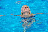 Kobieta w Pływaniu nurkowanie basen - zbliżenie na twarz