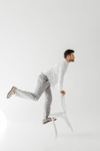 rozważny człowiek w lnianej koszuli biały na białym tle na szarym tle