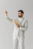 Zdjęcie "rozważny człowiek w lnianej koszuli biały na białym tle na szarym tle " może być wykorzystywane do celów osobistych i komercyjnych zgodnie z warunkami zakupionej licencji Royalty-free. Obraz jest dostępny do pobrania w jakości wysokiej rozdzielczości do 5760x3840.