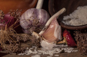 Zdjęcie "pęczek czosnek, chili, pieprz i tymianek" może być wykorzystywane do celów osobistych i komercyjnych zgodnie z warunkami zakupionej licencji Royalty-free. Obraz jest dostępny do pobrania w jakości wysokiej rozdzielczości do 5760x3840.