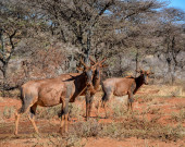 Młodzieńcze czerwonego Hartebeest w południowej afrykańskiej sawanny
