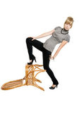 piękna młoda kobieta, leżąc na dwóch krzesłach na białym