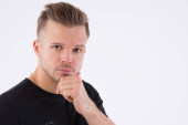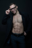 Młody przystojny mężczyzna jest w stanie spoczynku. Smart, mięśni i sexy. Kontrast tła